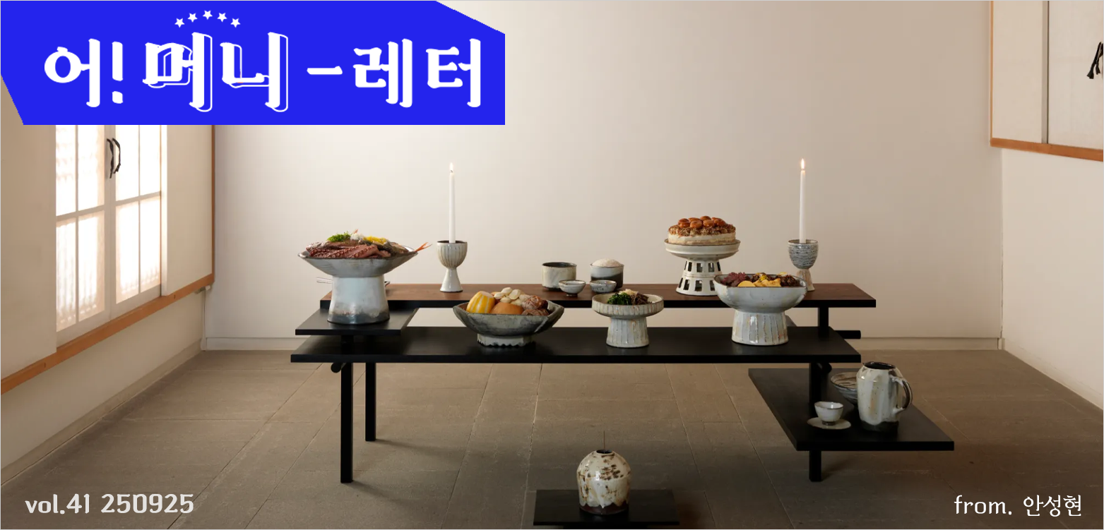 중요한 건 ‘우린 왜 제사를 지내는가?’에 대한 돌이킴일 거예요. ‘우리를 낳아 준 사람을 잊지 못해서’라는 선조의 뜻을 새겨 본다면! 가족이 모여 좋은 음식을 나누며 추억하는 날, 그 이상도 이하도 아닐 테니까요. 맞아요. 많이 이상적이죠. 저 역시 그때 받은 영감을 고스란히 제사상에 적용하진 못했어요. 하지만 우리의 인식이 변화하는 그 순간, 새로운 스타일의 제례는 이미 시작되는 거라고 믿어요.